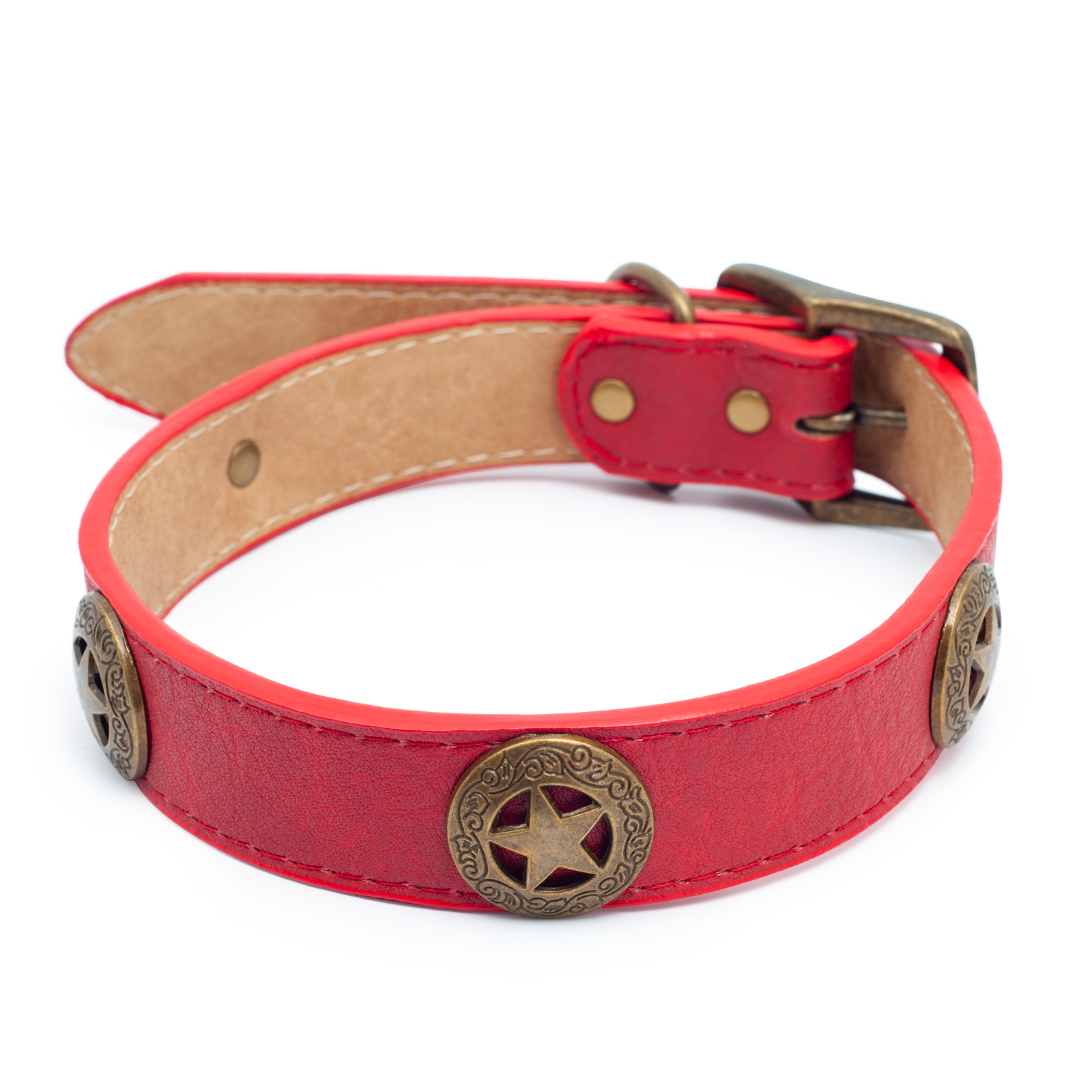 Zgardă STAR, piele ecologică, roșie, Domestico